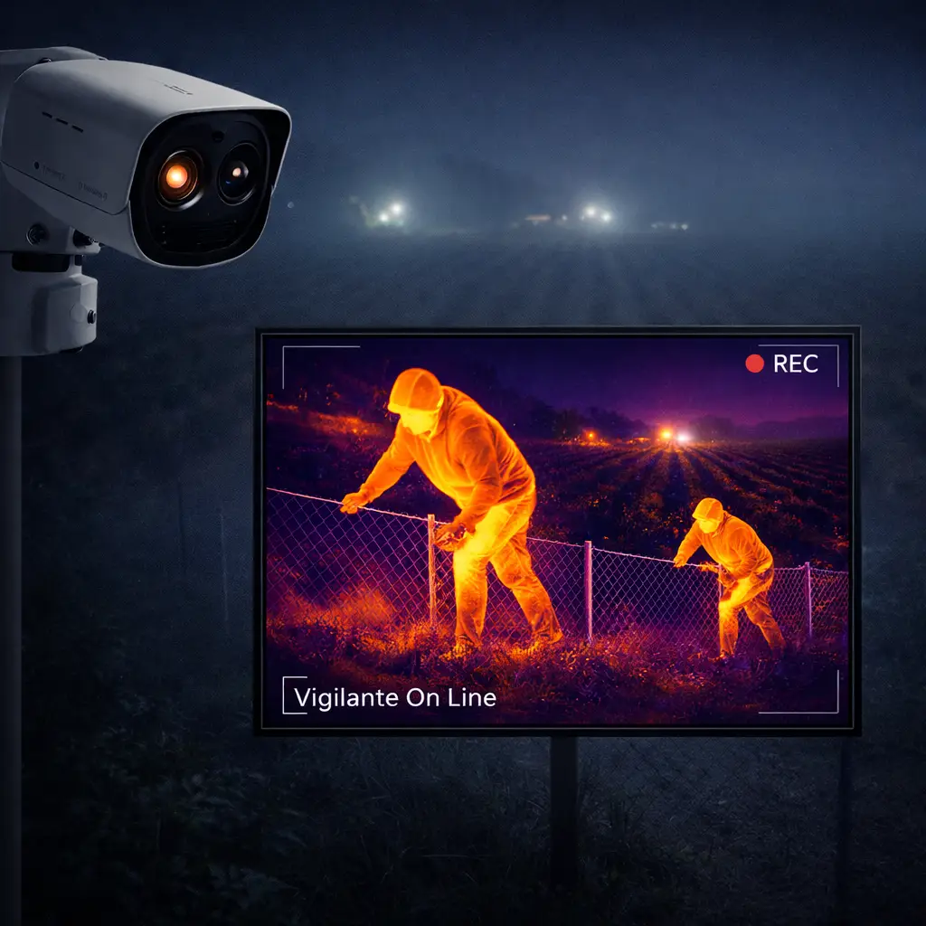 Las cámaras termales detectan personas y vehículos por su calor corporal, incluso en total oscuridad, neblina o polvo. Permiten identificar intrusos antes de que ingresen al campo, aumentando la seguridad agrícola. Protege tus cultivos y anticipa amenazas. Conoce cómo la tecnología de Vigilante On Line puede resguardar tu campo.